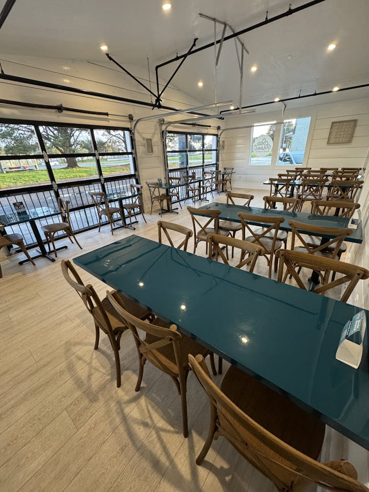Our sunroom at Seafront Baking Company offers a bright, coastal vibe with roll-up doors that bring in fresh sea air and natural light. Perfect for private events, it comfortably seats up to 30 guests in a cozy yet open layout. The space combines the charm of a seaside setting with the flexibility to create an indoor-outdoor experience.